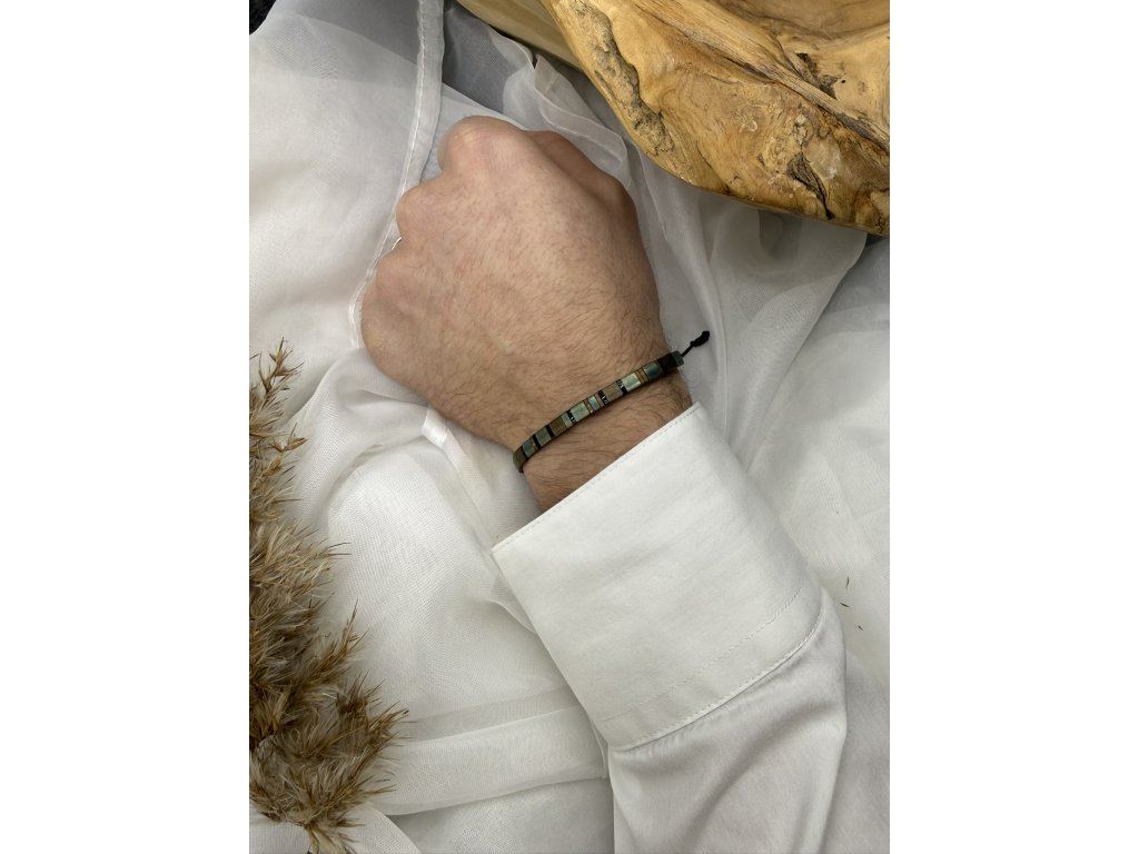Ručně vyráběný z japonských korálků, přičemž každý korálek je samostatně prošitý pevnou nití. Nylonový provázek je odolný, takže náramek zvládne i vodu a každodenní provoz. 🧵💧