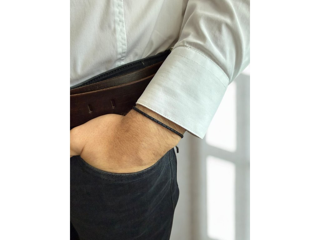 Náramek Rovnováha je čistý a nenápadný doplněk, který se hodí ke všemu — od trička až po košili. Je minimalistický, takže působí přirozeně i na ruce chlapa, který náramky nikdy moc nenosil. 🖤
